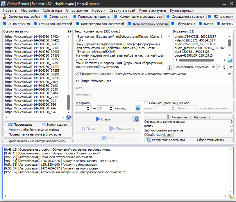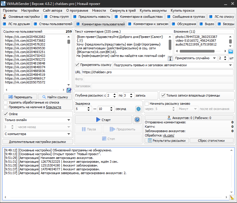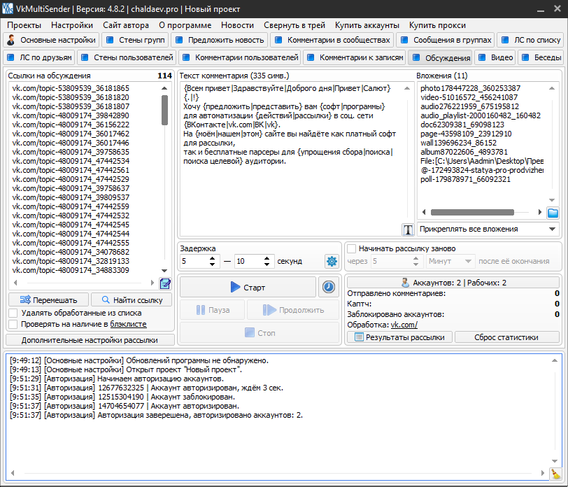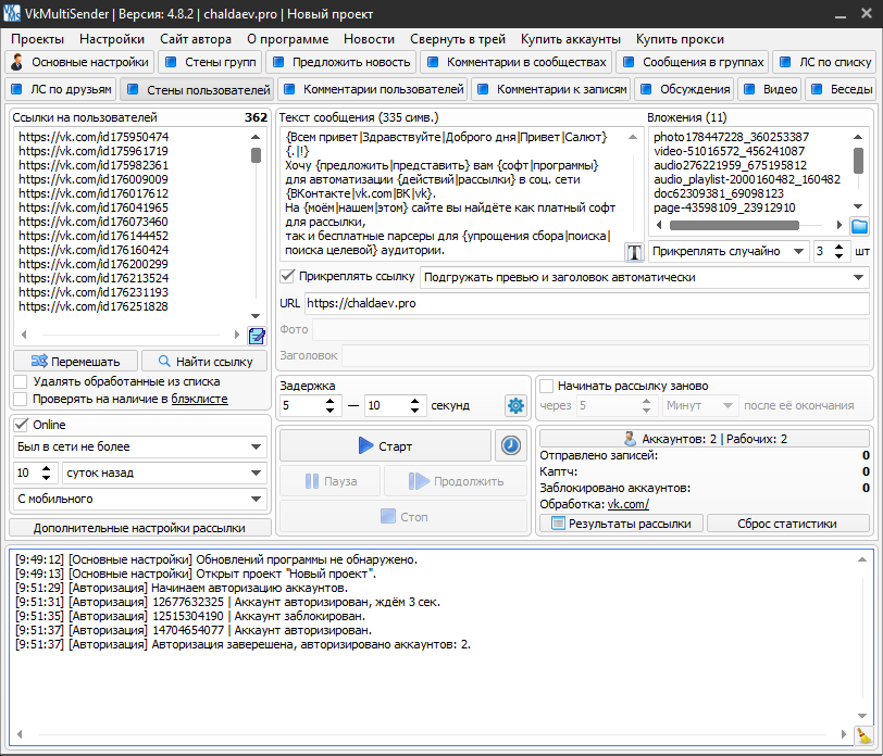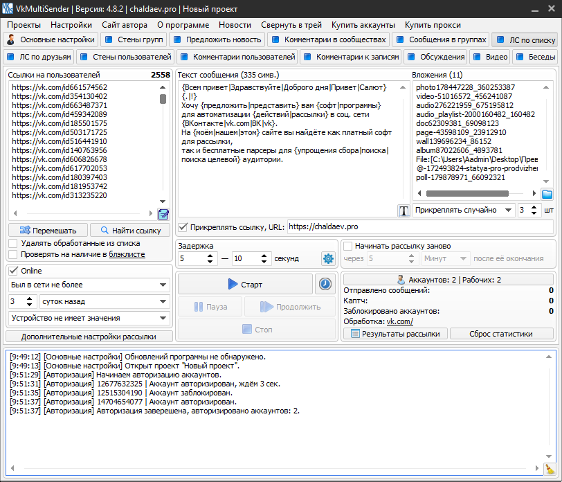 VkMultiSender - многофункциональный софт для рассылки ВК